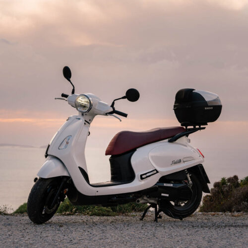 The SYM Fiddle 125cc is a stylish and efficient scooter that is perfect for exploring the winding roads and scenic routes of Naxos Island. With automatic transmission, this scooter is easy to ride, making it a great option for beginners and experienced riders alike. The Fiddle can carry up to 2 passengers and comes with helmets and a box for added convenience. Its fuel-efficient engine makes it an eco-friendly choice for your travels, while its compact size allows you to navigate through traffic and park in tight spaces with ease. At Sunny Rides, we take pride in keeping our SYM Fiddle scooters well-maintained and serviced to ensure a safe and enjoyable rental experience for our customers.